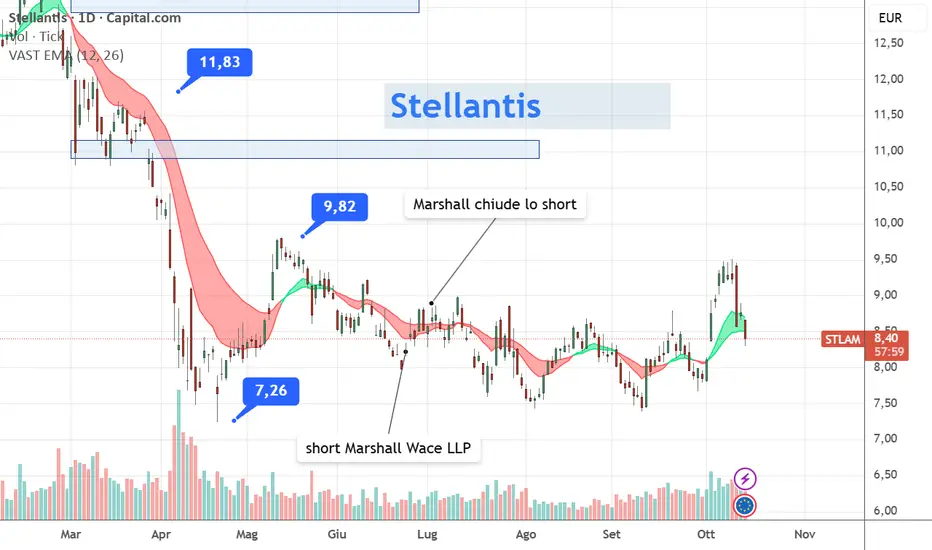 Stellantis torna a 8,5 euro creando un pullback da manuale. In condizioni di positività diffusa sarebbe un buy.