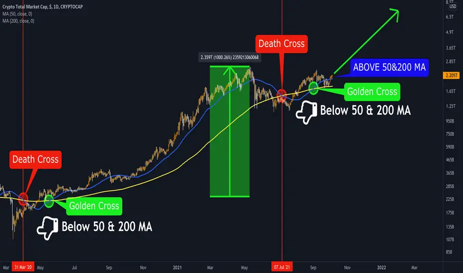 Looking at the Total chart I get the feeling of a deja vu when watching it closely. The situation we had back in March 2020 since the big drop seems to have repeated during the May 2021 selloff. In both cases we were below the 50 & 200 MA. In both cases it recovered quickly and a golden cross formed. I truly believe that what's coming next will be incredibly bullish