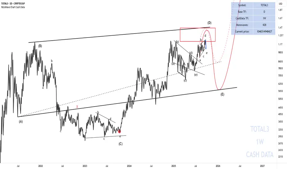 After the completion of wave-d , we observed a 10% drop in #TOTAL3, which led to a significant decline in altcoins.