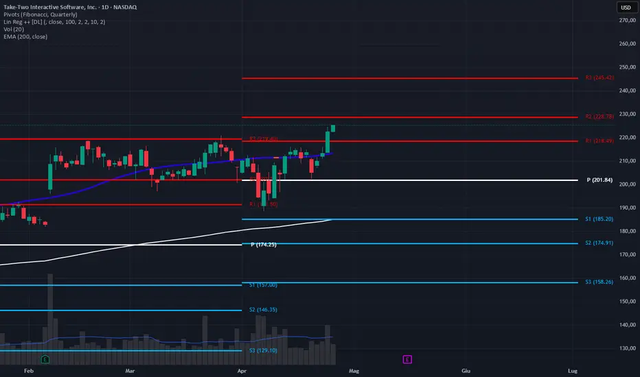 il titolo sulla scia delle indiscrezioni sul rilascio di GTA VI continua a accrescere il suo valore portandosi sopra i precedenti massimi. C'è poco altro da dire se non di comprare sui ribassi in quanto anche in un momento di forte incertezza il titolo è riuscito a crescere dimostrando una forza relativa molto alta.