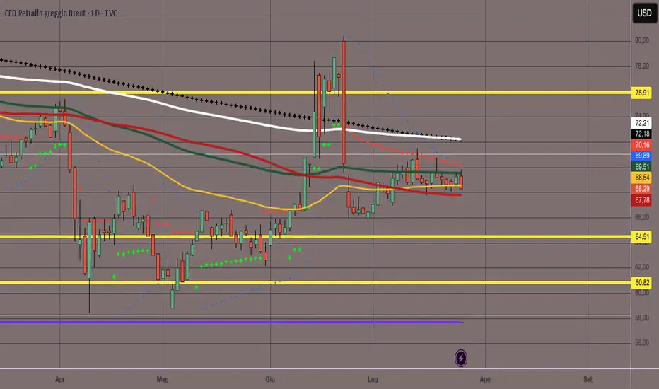 Volatilità assente sull'Oil ma che dovrebbe riprendere a breve. Quotazioni intrappolate in un range ristretto oramai da inizio mese.