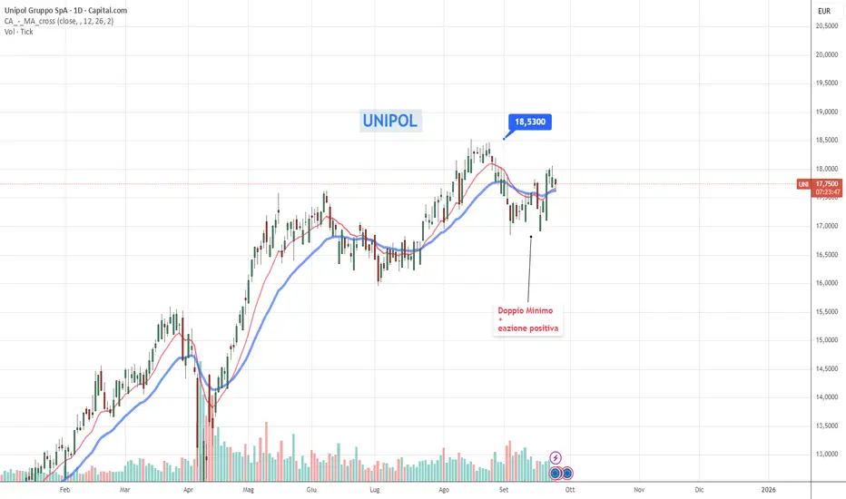 Applicando il metodo Wyckoff, che identifica fasi di accumulazione, markup, distribuzione e markdown attraverso volume e prezzo, Unipol appare in una fase di accumulazione preliminare. I recenti supporti testati con volumi in espansione su candele rialziste indicano l'intervento di "smart money" per assorbire l'offerta debole, senza segni evidenti di distribuzione. Il pattern attuale, con un range stretto e volumi decrescenti nei cali, suggerisce un potenziale markup verso i 19 euro se i volumi confermeranno la rottura della resistenza a 18 euro. Questa interpretazione si allinea con i principi wyckoffiani di analisi volume-prezzo, sebbene manchino analisi settoriali specifiche per il titolo.