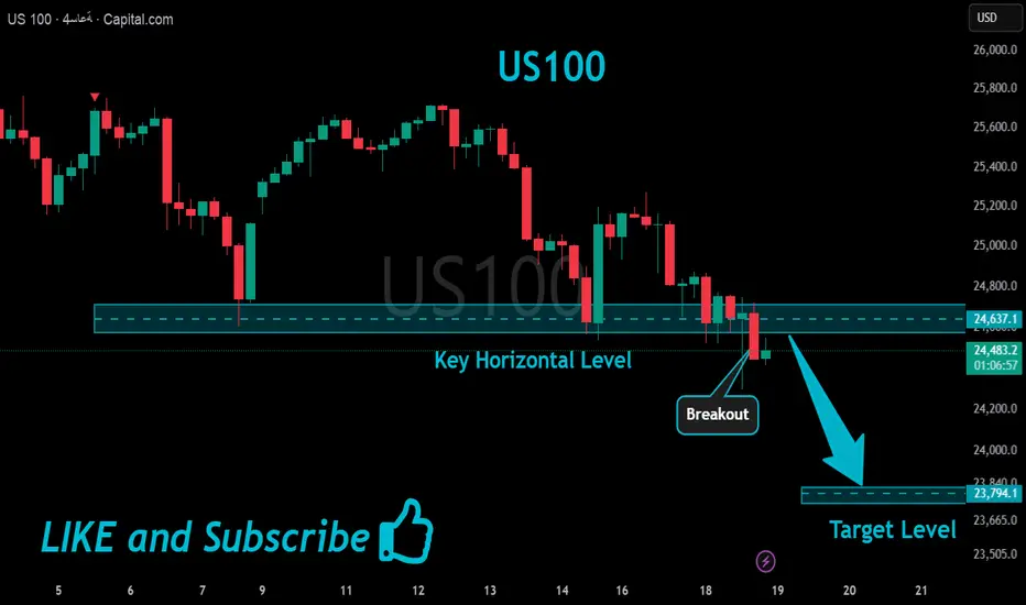 يواصل مؤشر #US100 انخفاضه، وقد حقق اختراقًا