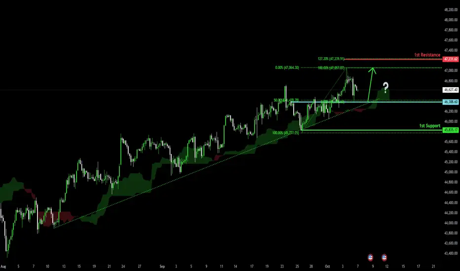 Dow Jones (US30) is reacting off the pivot and could bounce to the 1st resistance.