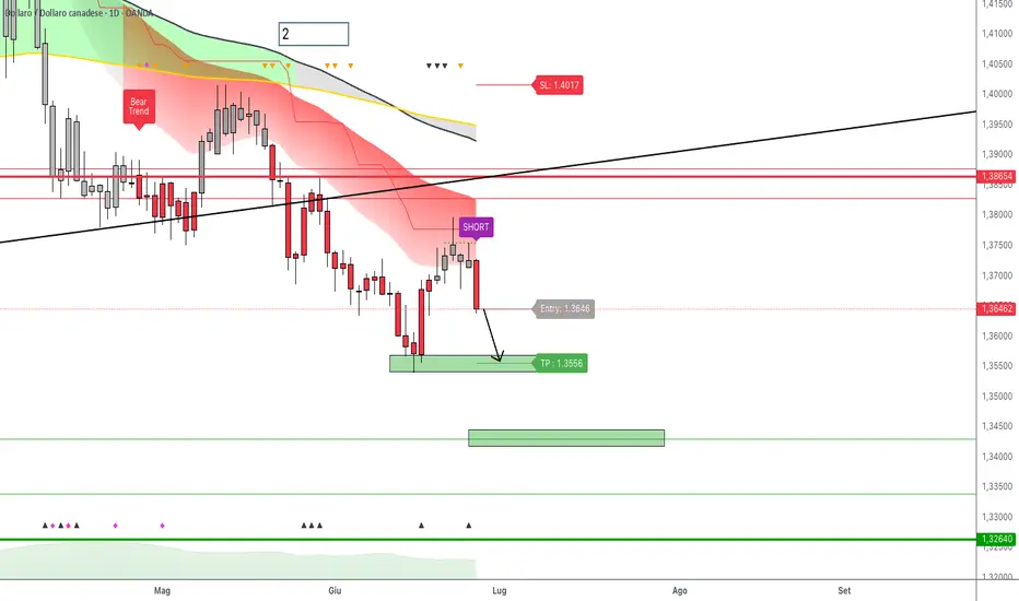 Nel caso in cui dovesse esserci un ritracciamento dei prezzi prima dell'arrivo all'area target, aggiungerò un ulteriore posizione che terrò fino alla seconda area target a 1,3440 qualora la dinamica ribassista continui in modo chiaro.