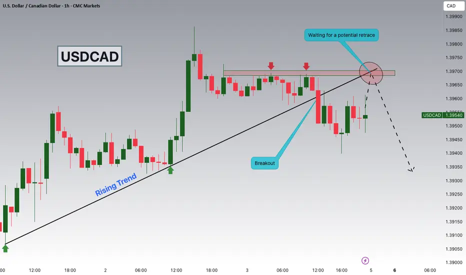 Hey Traders, in tomorrow's trading session we are monitoring USDCAD for a selling opportunity around 1.39700 zone, USDCAD was trading in an uptrend and successfully managed to break it out. Currently is in a correction phase in which it is approaching the retrace area at 1.39700 support and resistance area.