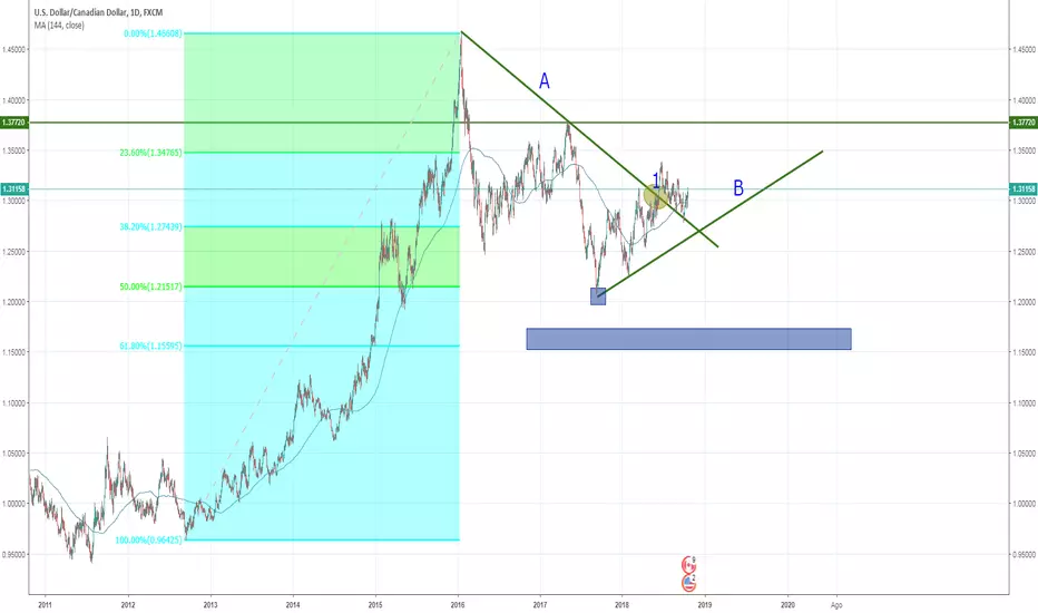 Da inizio settembre 2012, con valore 0,96, a gennaio 2016, con valore 1,45, c'è stata una grande crescita per questi cfd, da li in poi è segiuta una piccola discesa fino a 1,20 per poi riiniziare una lenta risalita. Tracciando fibonacci tra il lungo periodo di salita notiamo che ancora non possiamo parlare di cambio di trend in quanto, per quello che ho capito, non si è raggiunta e superata la soglia del 61,80%, ma solo un rimbalzo sul 50%. Tracciando due trendline (A,B) notiamo che nel punto 1 la trendline A da resistenza del trend negativo è diventata supporto del trend positivo. Naturalmente come già detto può essere che la mia nalisi sia completamente sbagliata specie nell'utilizzo del ritracciamento di fibonacci, quindi vorrei sapere un sincero parere da parte di chi ne sa più di me