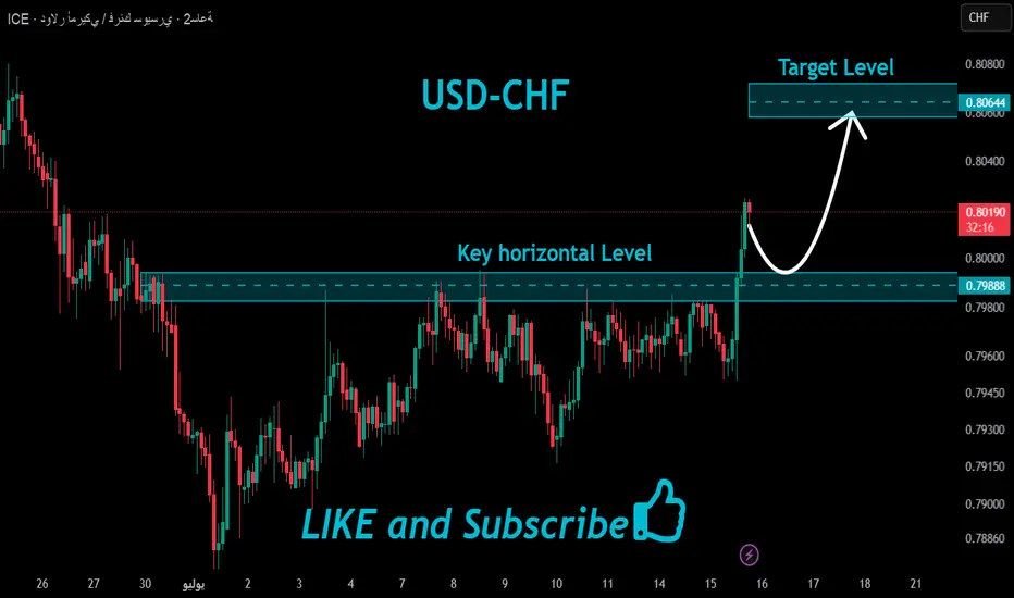 حقق زوج #USDCHF اختراقًا صعوديًا للمستوى