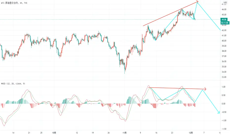 针对这种情况我前期的文章中也说过,原油是否布局中线空单取决于日线级别MACD快慢线何时死叉,而不是4小时级别是否会有二次背离,也就是说只要日线级别快慢线死叉了,空单就可以进场,但是现在还不是进场的时候所以不要着急,耐心等待形态成立即可!