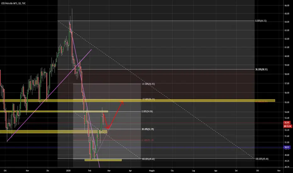 DIREI CHESI PUO AVERE ANCORA UN RIBASSO QUANTO RIGUARDO IL PETROLIO PER POI SALIRE NEL PUNTO 61.8 DI FIBONACCI E VEDERE SE UNA VOLTA ENTRATO NELLA ZONA ROSSA ESCA VERSO SU O GIU IN MODO DA POTER ESEGUIRE UN ANALISI PIU CONGRUA