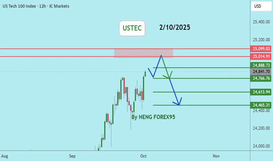 Nasdaq price is still in a strong uptrend, there is a chance to test the 25014-25124 level. If the price cannot break through the 25124 level, it is expected that the price will have a chance to go down. Consider selling in the red zone.