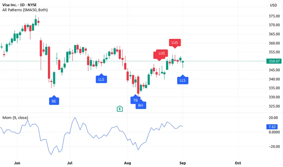 On the daily chart, Visa has printed bullish candlestick signals — including long lower shadows that show buyers stepping in to defend support. This suggests