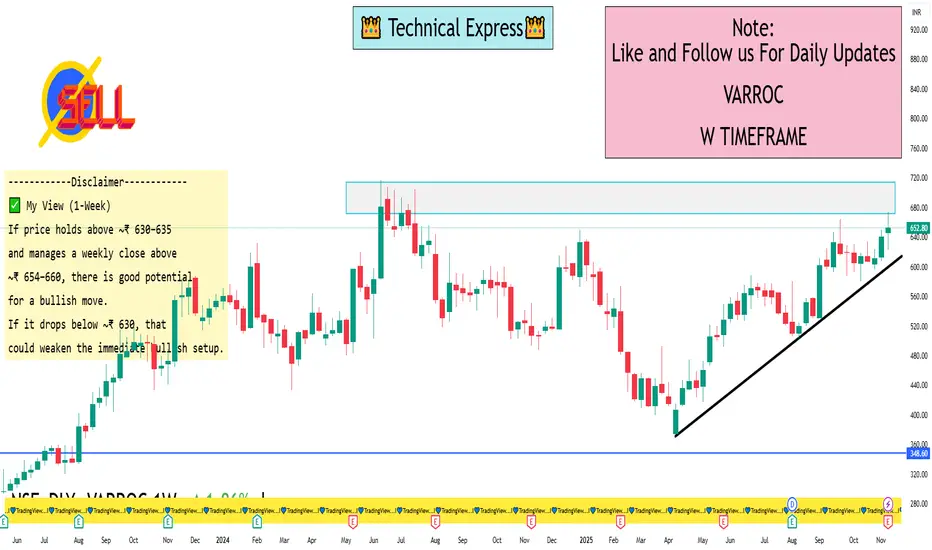 If price holds above ~₹ 630–635 and manages a weekly close above ~₹ 654–660, there is good potential for a bullish move.