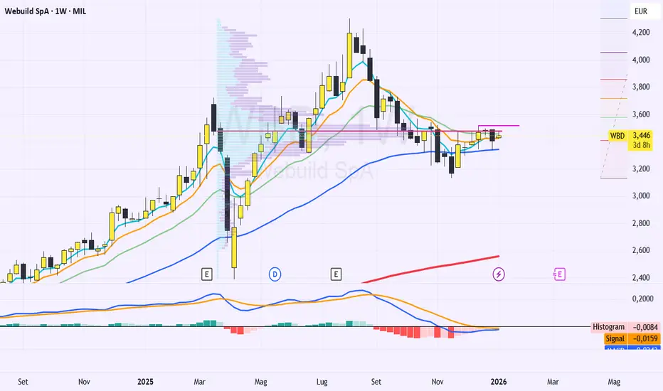 Da lì il titolo ha reagito, tornando a 3,40–3,45, esattamente sul POC e su un livello che ha già più volte respinto i prezzi.