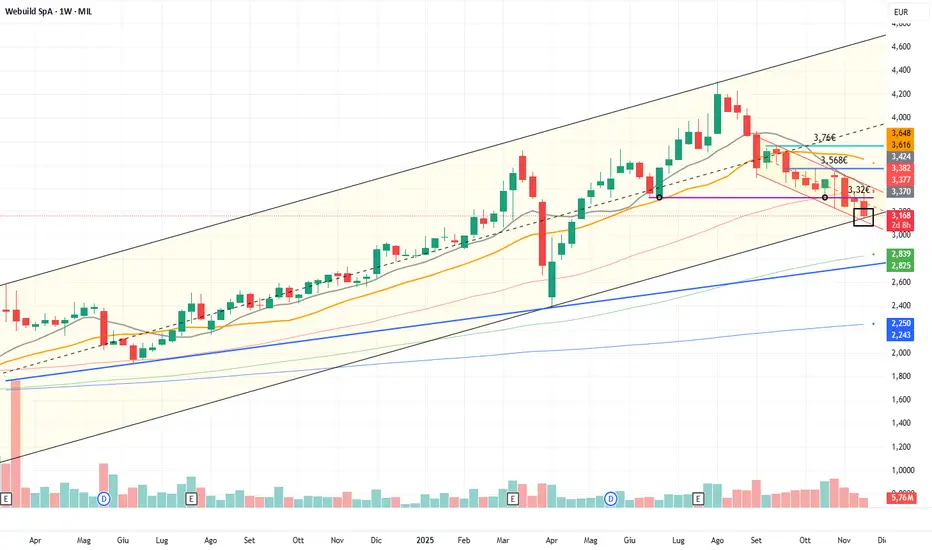 Il prezzo oggi raggiunge il fondo del canale sui 3,15€ offrendo una opportunità di accumulo o di ingresso