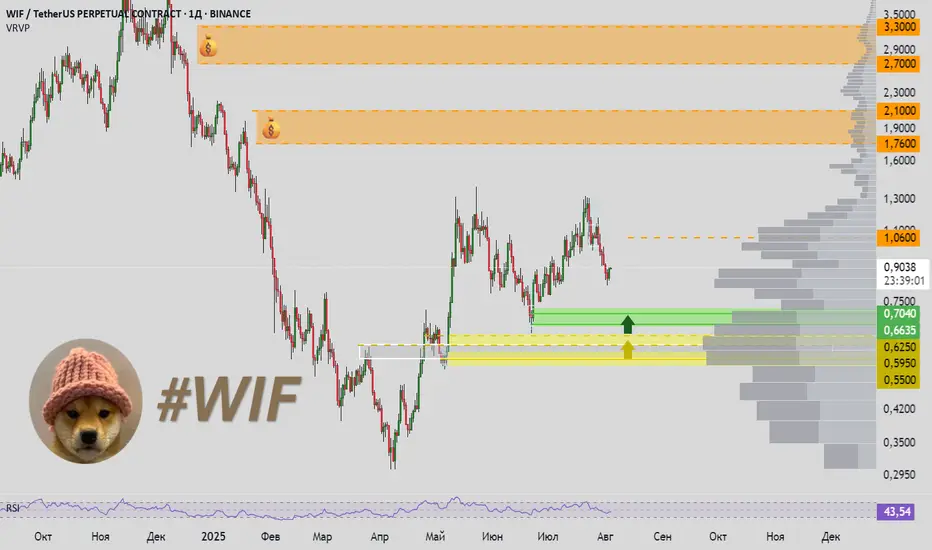 WIF — это мемкоин на базе Solana, ставший популярным за счёт комьюнити и узнаваемого образа "шиба в шапке". Волатильность высокая, активно торгуется на спекуляциях и пампах.