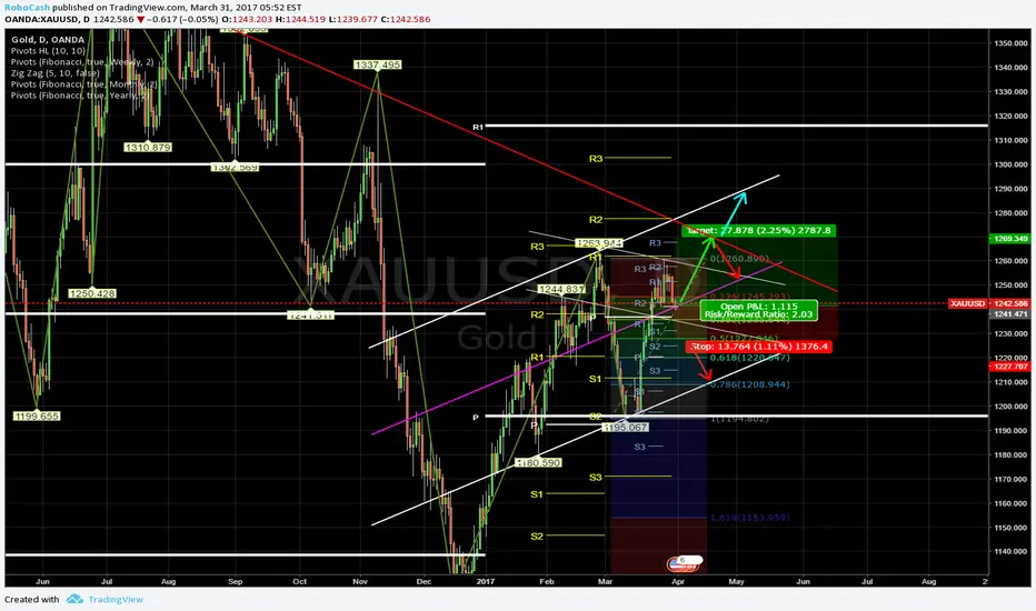 Take some profit of the Monthly R1 TP1 (yellow line hit). Solid break above 1260 and retracement wll add more long.Nota