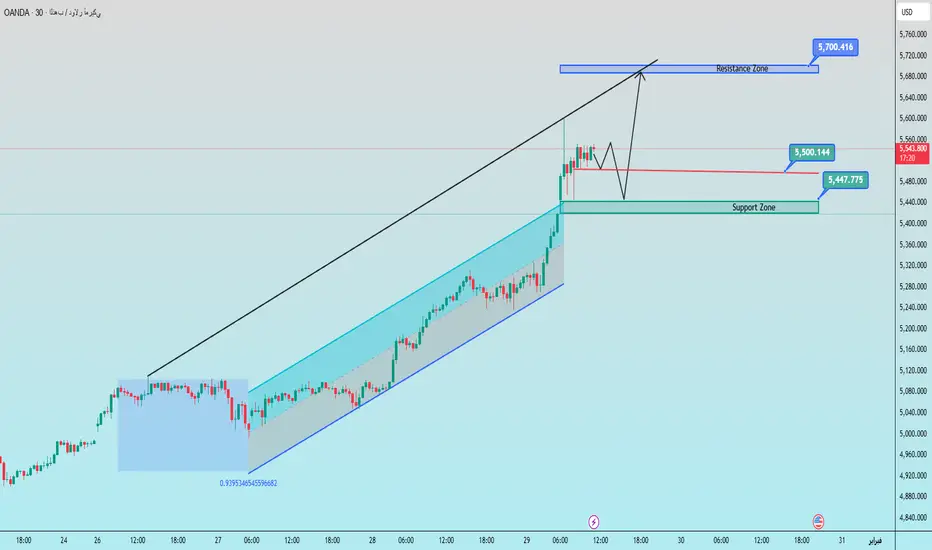 شراء الذهب: 5,448 – 5,450إيقاف الخسارة: 5,440