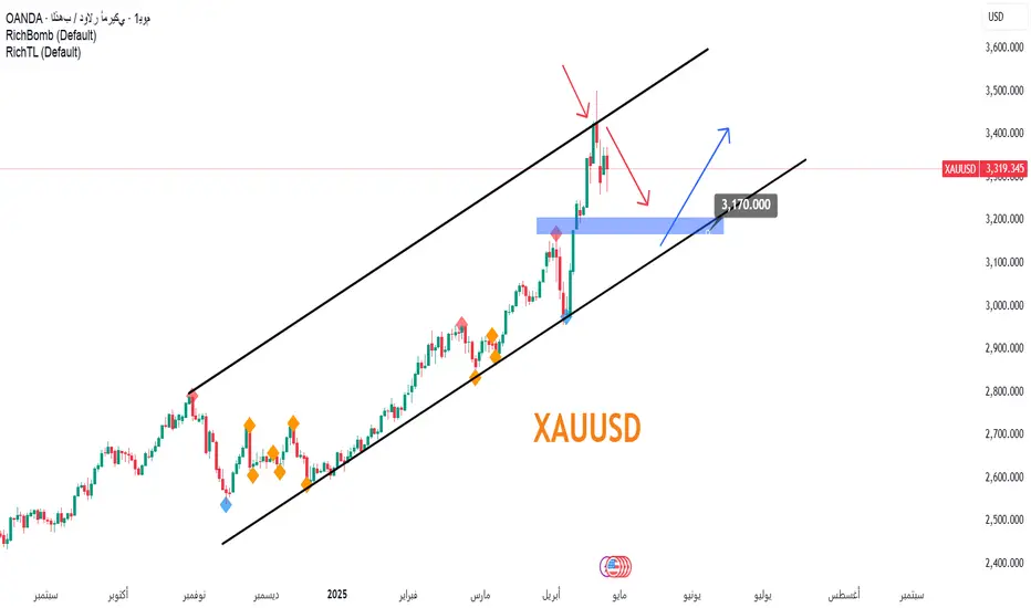 إرتد سعر الذهب من القمة التاريخية التي شكلها عند أسعار 3500 دولار للأونصة وكانت هذه منطقة الترند العلوي للقناة الصاعدة باللون الأسود فهبطت أسعار الذهب حوالي 300 دولار وصولا الى أسعار 3200 دولار للأونصة والآن يرتكز الذهب حوالي أسعار 3300 ومن هذه المنطقة نتوقع أن يستمر الذهب في موجته الهبوطية نحو منطقة الترند السفلي للقناة التي تتقاطع مع منطقة الدعم والقمة السابقة حوالي أسعار 3170 وهي منطقة شرائية مميزة. المنطقة الشرائية للذهب تمتد من أسعار 3200 الى أسعار 3150 وعند وصول الذهب الى هذه المناطق علينا إنتظار تشكل الفرص الشرائية أو تأكيد الإرتداد الصعودي للدخول مجددا في الموجات الصاعدة التي قد تتشكل مع الإتجاه العام الصاعد.