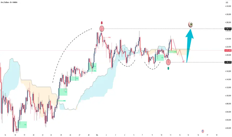 Il prezzo è sceso nella zona di supporto di 4.182 → liquidità testata → è rimbalzato fortemente verso 4.265 - 4.270 per completare l'obiettivo di picco mensile.