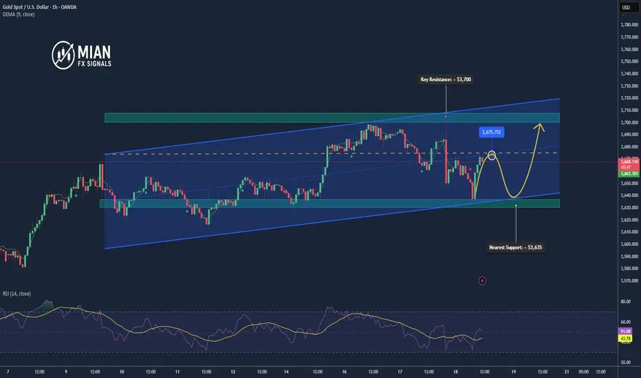 • Candlestick / Momentum: H1 candles printed a long lower wick around 3633 → signal of bottom-fishing demand. Momentum is recovering but resistance at 3700 remains tough, suggesting further choppiness ahead.