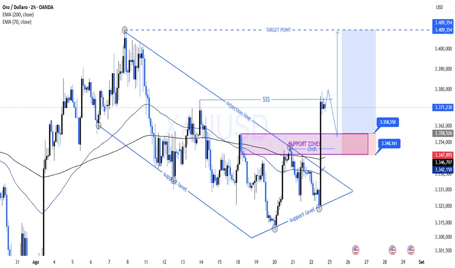 ✅ Zona di supporto: $3,348–$3,358 ora è una forte area di domanda (precedente zona di rifiuto trasformata in supporto).