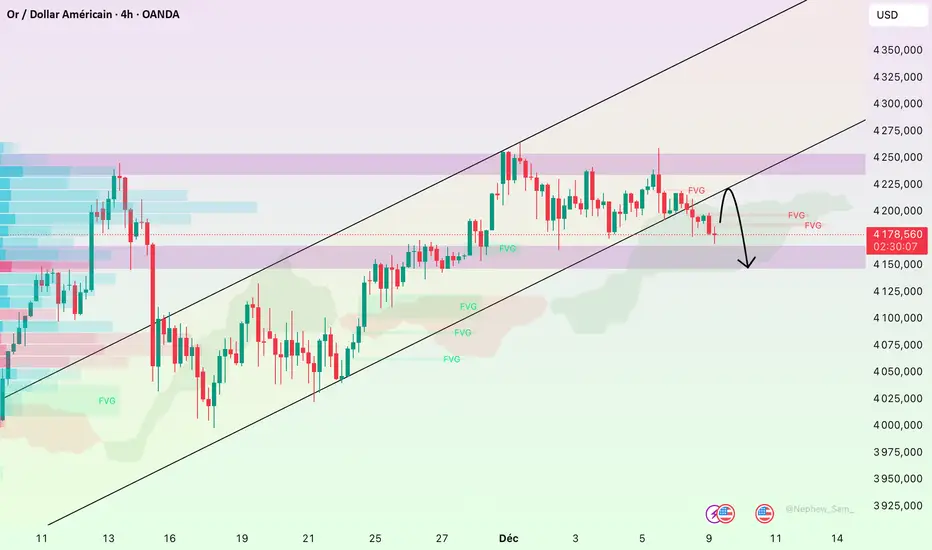 Techniquement, le rejet du seuil de 4 220 USD/oz a ramené le prix vers 4 180–4 190, où la dynamique s’est clairement figée. La zone 4 210–4 220 se comporte à nouveau comme une barrière immédiate, les mèches hautes répétées soulignant des prises de profit actives. Tant que l’or reste au-dessus du nuage Ichimoku et du support 4 170–4 180, la structure reste préservée ; mais une rupture ouvrirait la voie à un repli plus prononcé vers 4 140–4 150.