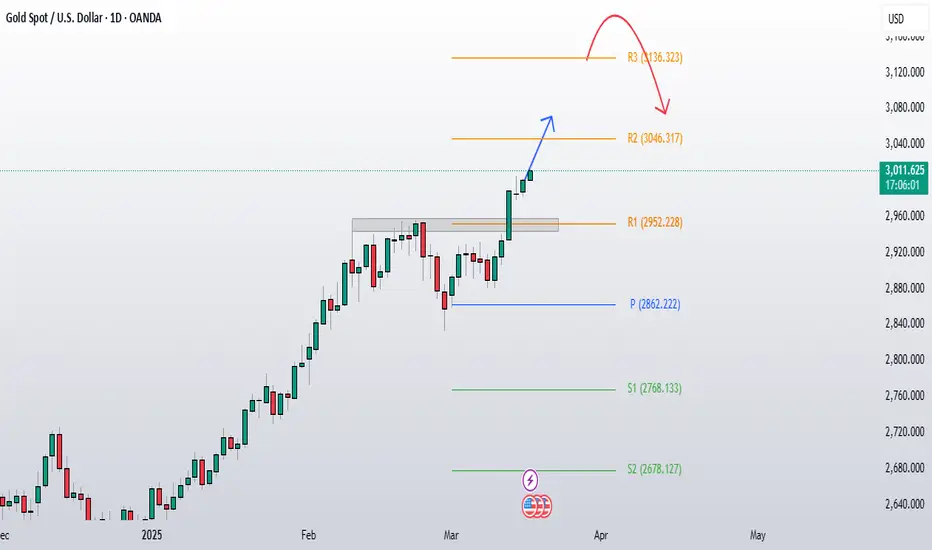 1. Primary Scenario (Continued Bullish Momentum): Gold is likely to test the R2 resistance at 3,046.317 in the near term. With current momentum, a push toward R3 at 3,136.323 remains a strong possibility.