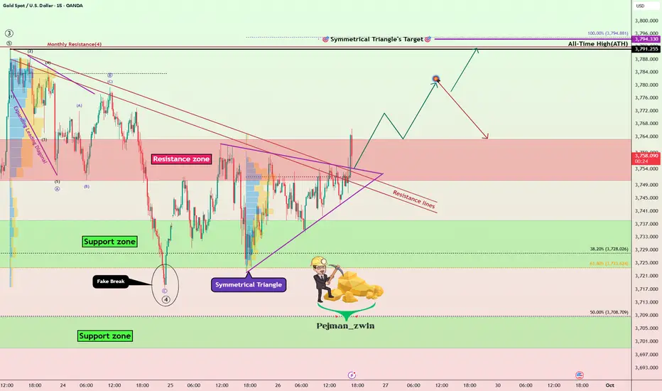 Gold seems to have managed to break the Resistance lines, Resistance zone($3,763-$3,750), and the upper line of the symmetrical triangle in the past few minutes.