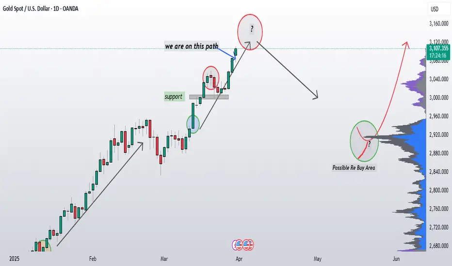 We've seen consistent higher highs and higher lows within this uptrend.Recent price action shows increased volatility near to current price zone 3100-10.