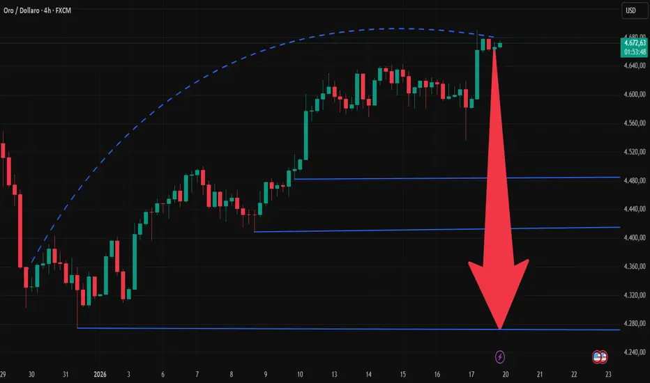 ● XAU/USD ha formato un canale rialzista, ma l'ultimo impulso si è bloccato all'interno dell'area di resistenza superiore, vicino a 4.680-4.690, dove il prezzo è passato a un forte consolidamento ribassista.