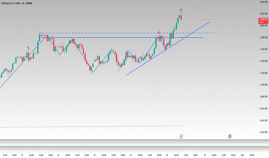 With the rising gold price, it has broken through previous resistance and reached a new high. The previous high of 3780-3790 has become a key level for a potential trend reversal. During the European session, if gold retraces to this range, we can consider buying gold with a target of 3820-3830.
