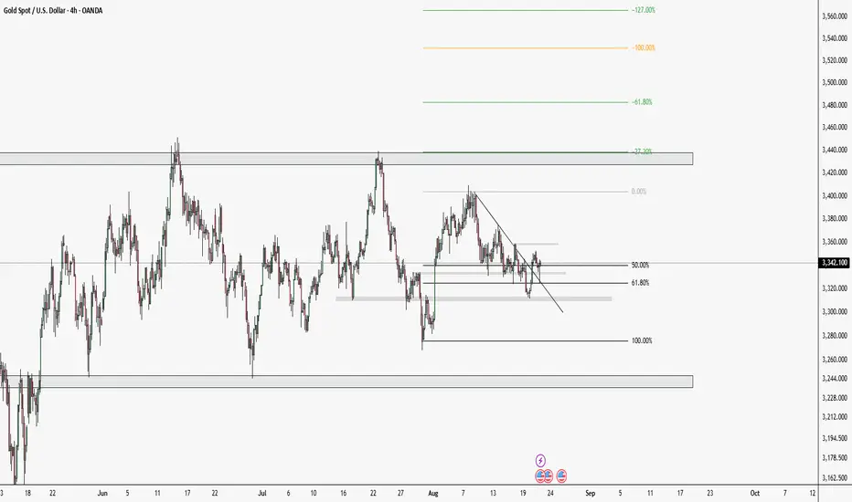 As of August 19, we respected 3311, which is a common level of support/ rejection throughout the daily range. Looking at August 19, we respected that area as well with a healthy rejection once again. Referring back to the 1H, we can see August 17 & August 21 holding price around 3326. As long as we see a failure and a higher high created on the 1H and potentially the 4H we can expect more bullish expansion.