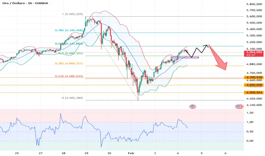 Sul grafico orario, l'oro è salito a $ 5.092 durante le sessioni asiatiche ed europee, prima di arretrare leggermente, attestandosi attualmente intorno a $ 5.053. Le Bande di Bollinger si stanno allargando verso l'alto, con il prezzo vicino alla banda superiore. L'indicatore KDJ mostra un crossover discendente, indicando una grave condizione di ipercomprato. Il prezzo è attualmente in territorio di ipercomprato, limitando un ulteriore potenziale di rialzo nel breve termine. Dato il grafico giornaliero rialzista e la condizione di ipercomprato nell'intervallo di tempo più breve, si consiglia di attendere un pullback verso i livelli di supporto prima di acquistare nel trading intraday. Prestare attenzione alla resistenza a $ 5.100.