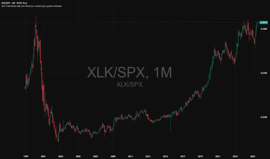 Il grafico, che riprende un originale approccio al problema da parte di BofA, mostra come la rappresentanza, all'oggi, del 34% del settore tecnologico nell'indice S&P 500 sia ora maggiore di quella del settore tecnologico nel 2000, prima dello scoppio della bolla di Internet.
