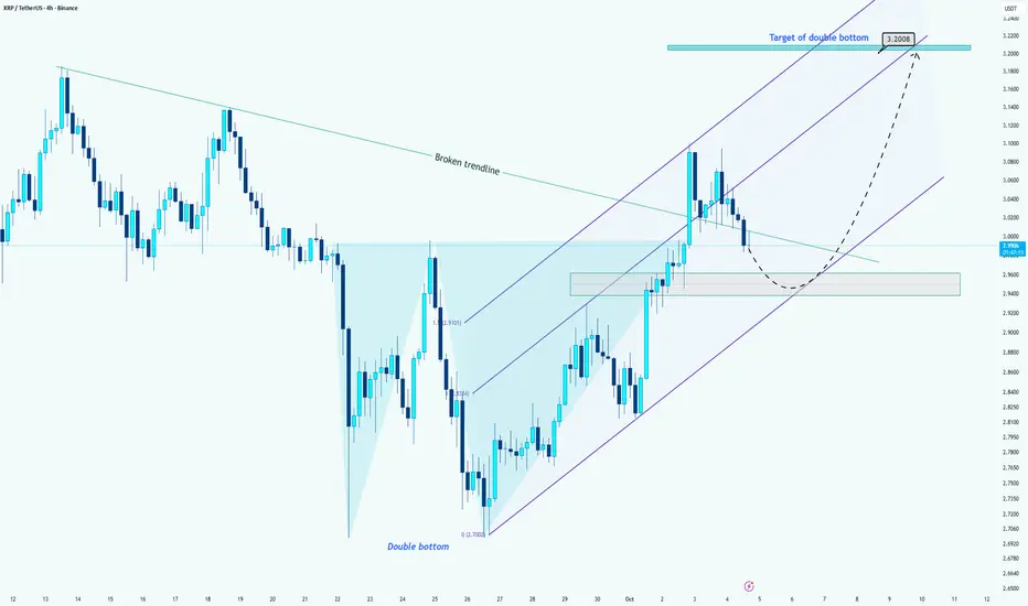 After breaking above the descending trendline, XRP has confirmed a double bottom pattern around the 2.70 area.