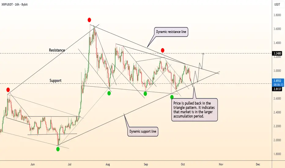 â—Ź Accumulation inside triangle; breakout above $2.90 could target $3.25. Structure and fundamentals favor mid-term bullish momentum.