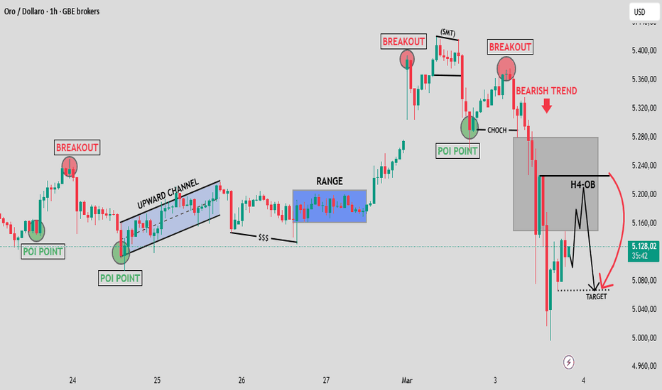 XAUUSD: Inversione Ribassista & Mitigazione Order Block H4Analisi Tecnica