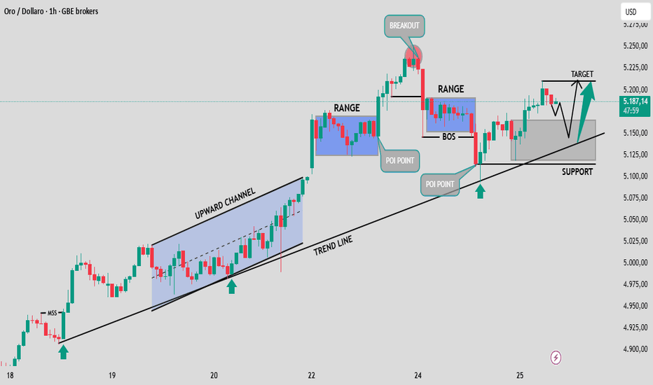 XAUUSD 1H – Fine del canale ribassista e inversione rialzista ?Contesto di mercato: Dopo un primo breakout rialzista, il prezzo è entrato in una fase di consolidamento, seguita da una forte espansione ribassista che ha rotto la parte inferiore del range.