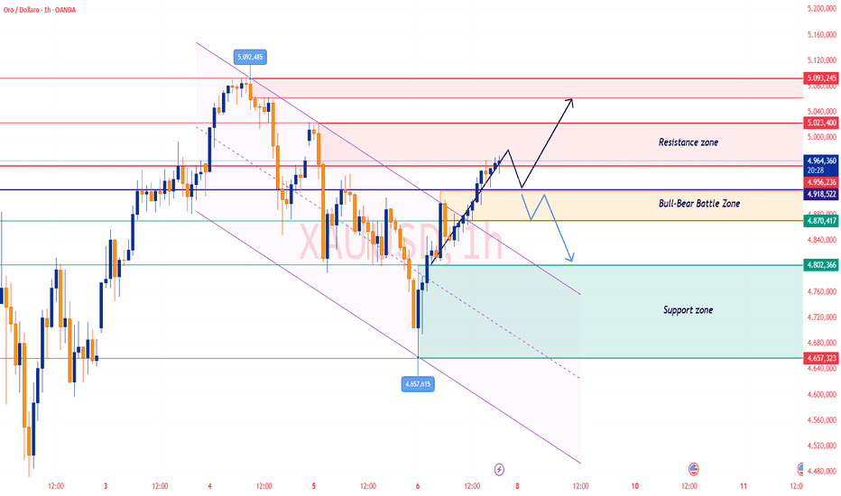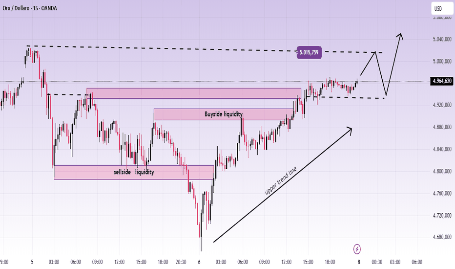Continuazione bullish: Mantenere sopra 4,940–4,970 → riprendere i massimi → cercare liquidità verso 5,015, poi estensione più in alto se il prezzo accetta.