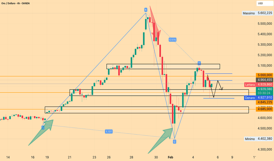 Analisi Tecnica Completa sull'Oro al 5 febbraio 2026Oro XAUUSD: zona critica 4.800–4.955 USD