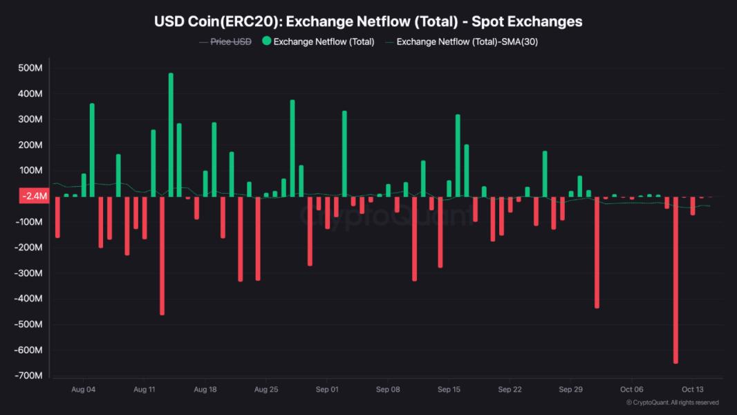 TeddyVision highlighted two distinct trends from August 1 to mid-October 2025. An analysis of the 30-day SMA of stablecoin net inflows to exchanges shows that capital used for actual asset purchases has decreased, while liquidity supporting leveraged derivatives like futures and perpetual contracts has increased.