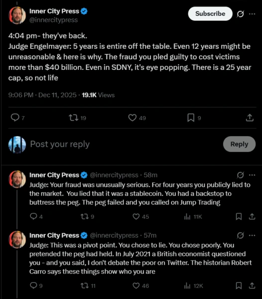 La sentenza, pronunciata l’11 dicembre 2025, arriva dopo che Kwon aveva ammesso la propria colpevolezza all’inizio di quest’anno.
