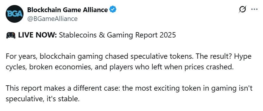据报告称,开发者日益将稳定币视为游戏下一个增长周期的“货币操作系统”。