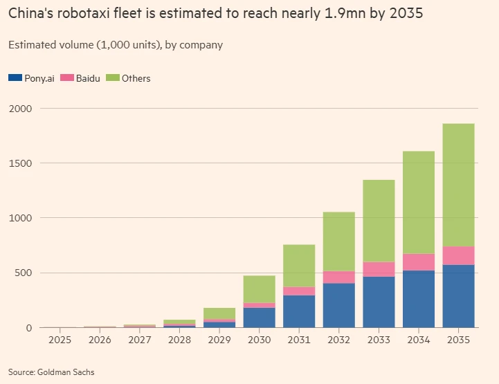 Goldman Sachs expects China to have over 500,000 robotaxis by 2030. But here too, the rollout is managed tightly by local governments. Safety, liability, and data regulations are still being drafted.