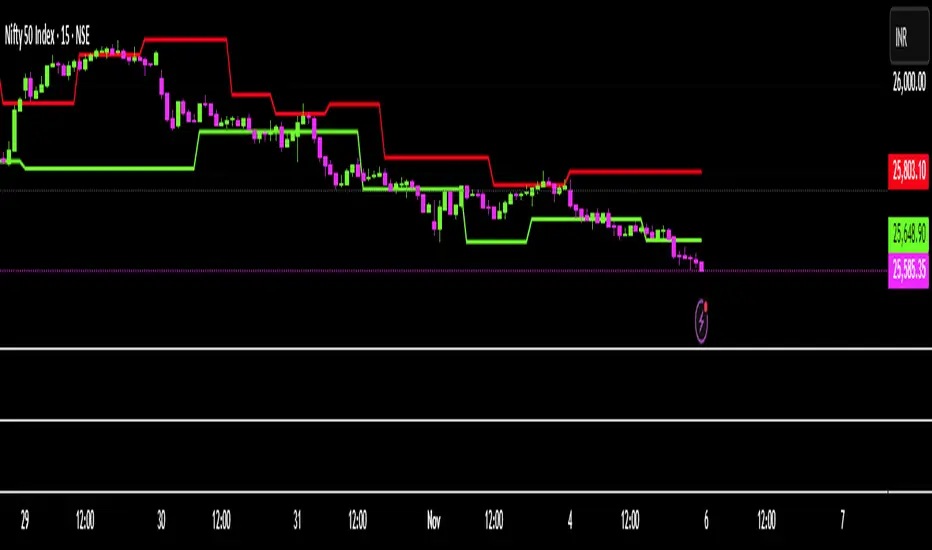 1. This Pine Script, "KATIK Anchor Levels", automatically identifies recent swing highs and lows to define an active anchor zone on the chart.