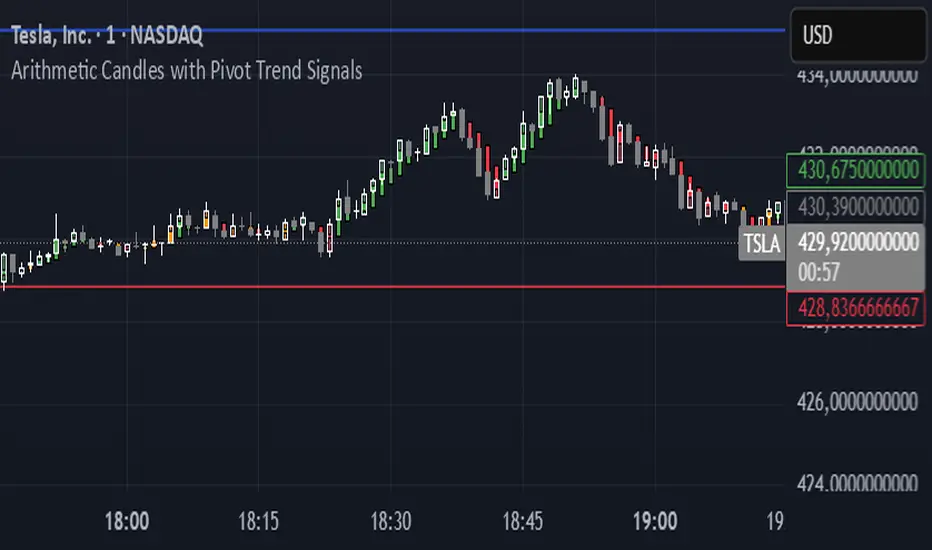 The script generates trend signals when a selected price source crosses above or below the pivot: