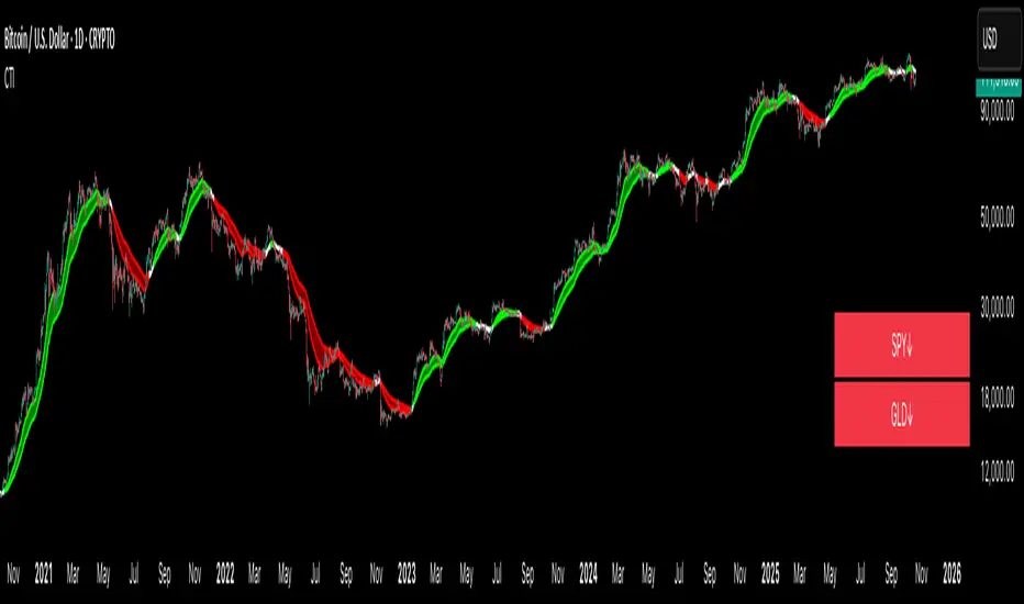 The Crypto Trend Indicator is a trend-following indicator specifically designed to identify bullish and bearish trends in the price of Bitcoin, and other cryptocurrencies. This indicator doesn't provide explicit instructions on when to buy or sell, but rather offers an understanding of whether the trend is bullish or bearish. It's important to note that this indicator is only useful for trend trading.