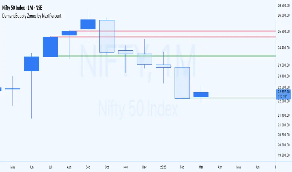 DemandSupply Zones by NextPercent - Smart Supply & Demand ZonesA powerful indicator that auto-detects high-probability trading zones using wick analysis & zone respect filtering—ideal for day & swing traders on any timeframe.