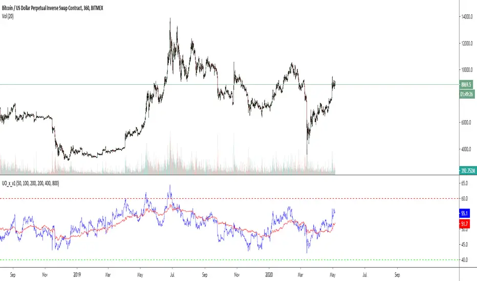 - To confirm the reversal of an uptrend - Blue UO must cross below Red UO.